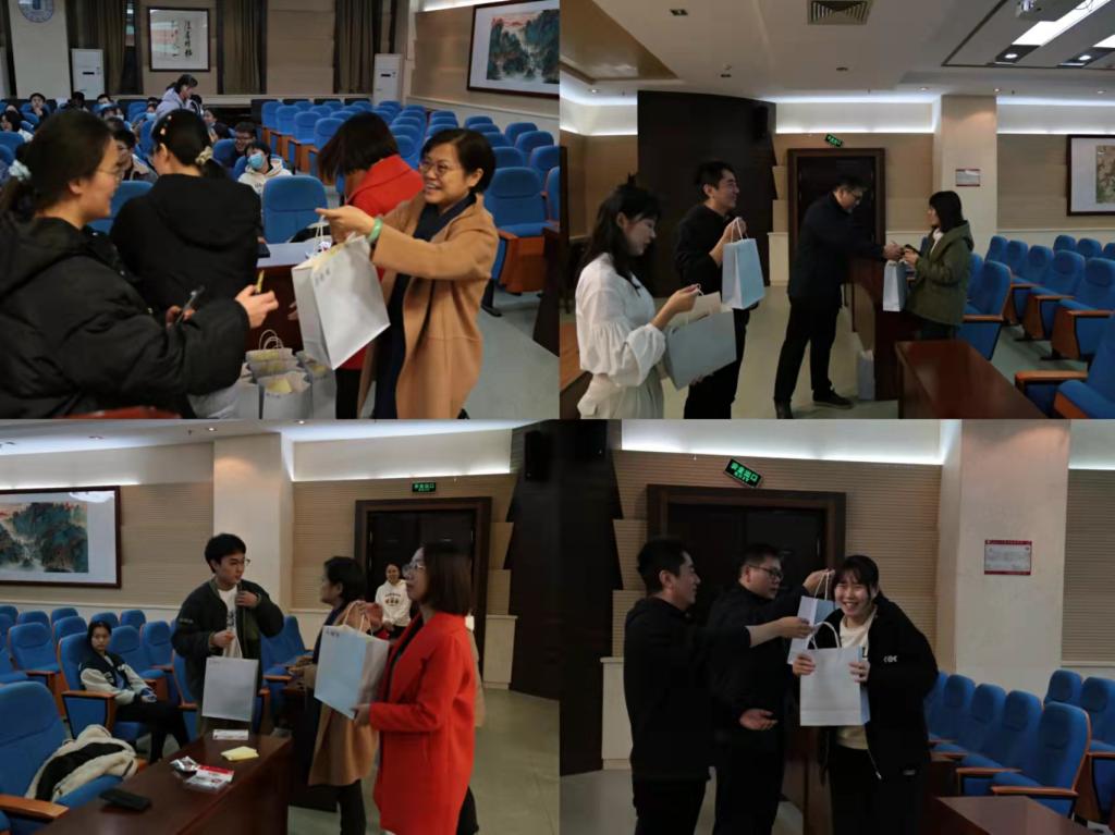 随后,各位老师给同学们分发了精心准备的 “考研慰问加油包”——学习、生活用品和个人专属明信片,慰问加油包饱含了学院对考研学子的殷切期待和深深的祝福。