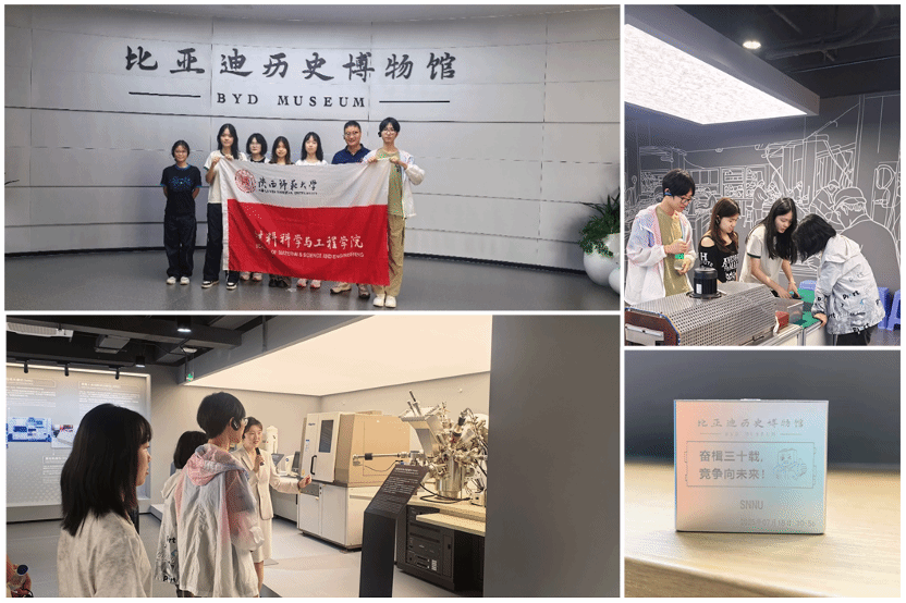 为深化科学教育专业实践教学,搭建理论与产业前沿的沟通桥梁,7月17日至19日,陕西师范大学材料科学与工程学院科学教育专业2024级6名本科生在指导教师李登的带领下,赴深圳开展“青春祖国行”主题社会实践活动。此次研学以"探访前沿科技、解析产研逻辑、赋能科教创新"为主题,师生一行先后走进比亚迪历史博物馆、南方科技大学材料系及中国科学院深圳先进技术研究院,在沉浸式体验中触摸新能源、新材料与人工智能领域的发展脉搏,深入剖析深圳"产—学—研"深度融合的独特机制。