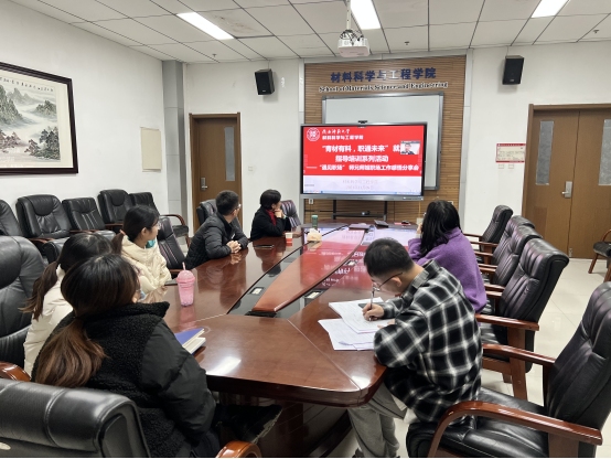 11月9日晚,材料科学与工程学院线上线下联动举办“遇见职场”——师兄师姐行业工作感悟分享会。分享会邀请现就职于某世界500强企业优秀毕业生刘富强、学生处赵伟老师、本科生辅导员丁喜主讲。党委副书记靳春泓、2018级本科生、2019级硕士、博士研究生悉数参加。本次分享会由研究生兼职辅导员马文华主持。