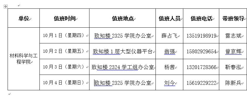 4.值班人员必须以高度的政治责任感做好值班工作,凡遇重大问题,及时向带班领导汇报,或向学校总值班室(85310005)反映。