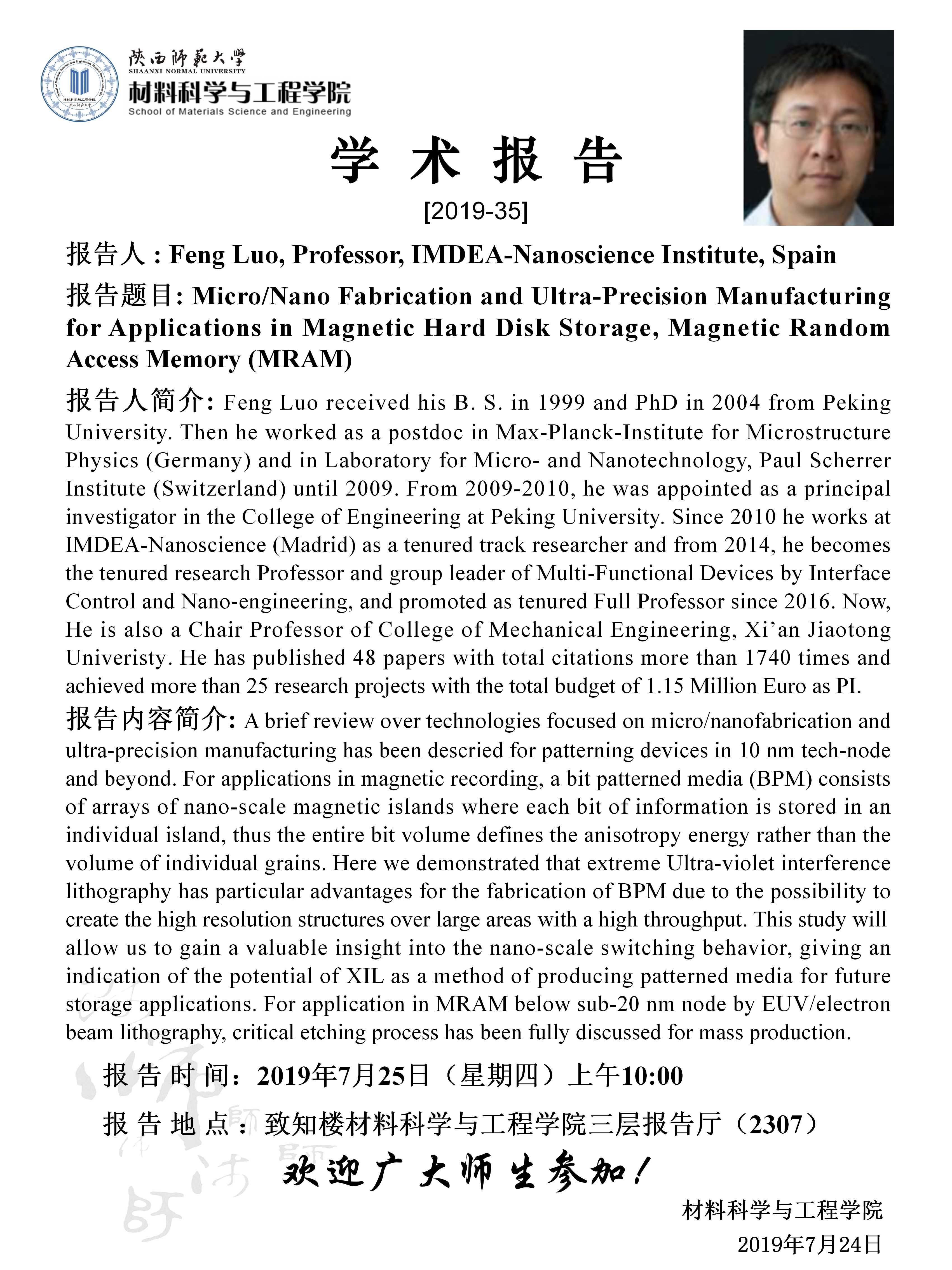 【学术报告】7月25日学术报告预告