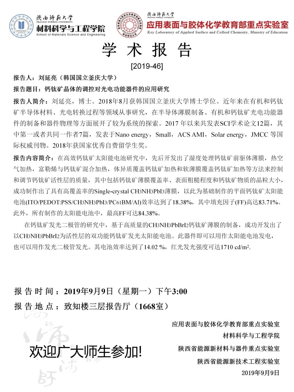 【学术报告】9月9日学术报告预告