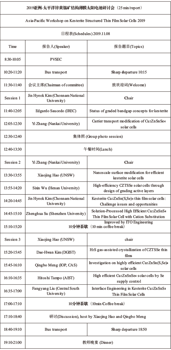 2019亚洲-太平洋锌黄锡矿结构薄膜太阳电池研讨会