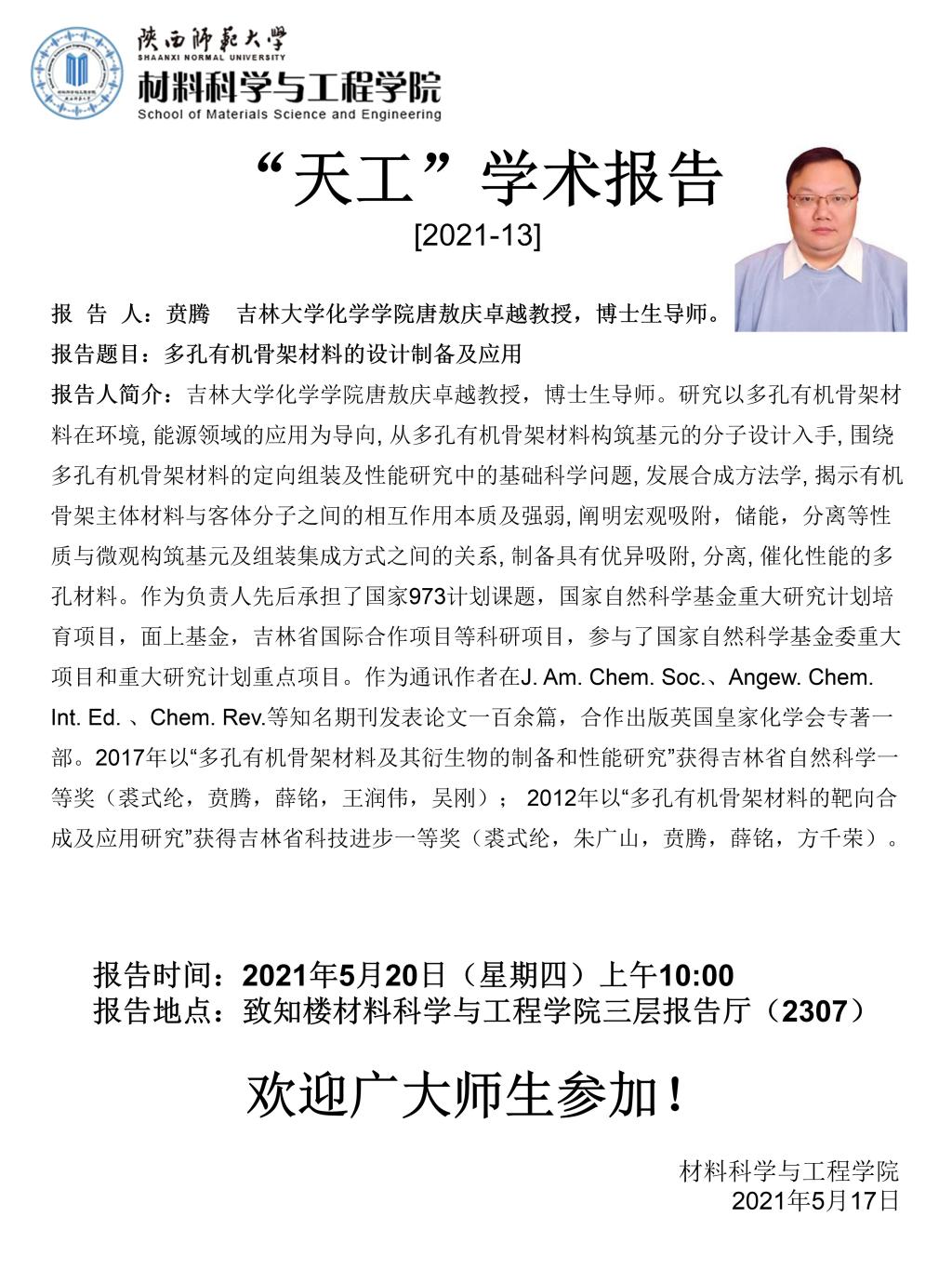 【学术报告】5月20日学术报告预告(一)