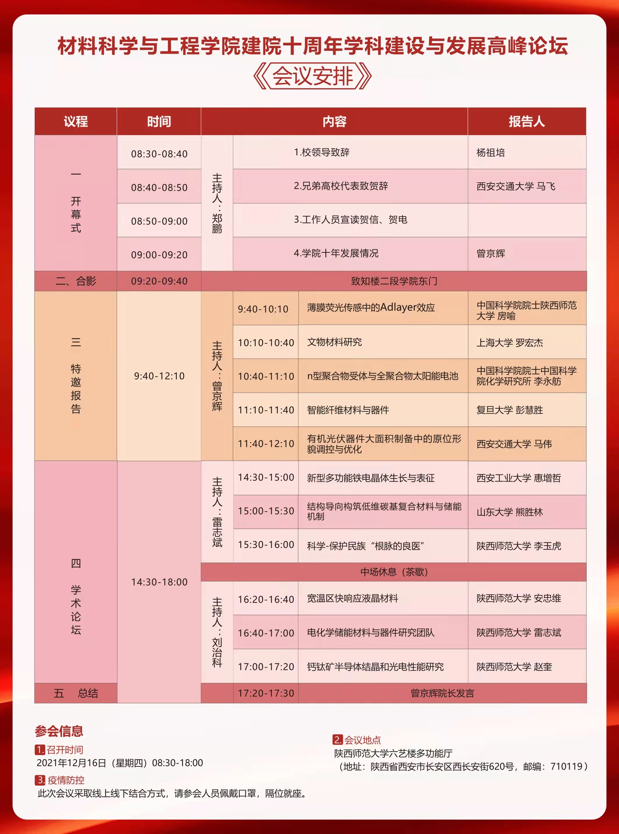 材料科学与工程学院建院十周年学科建设与发展高峰论坛