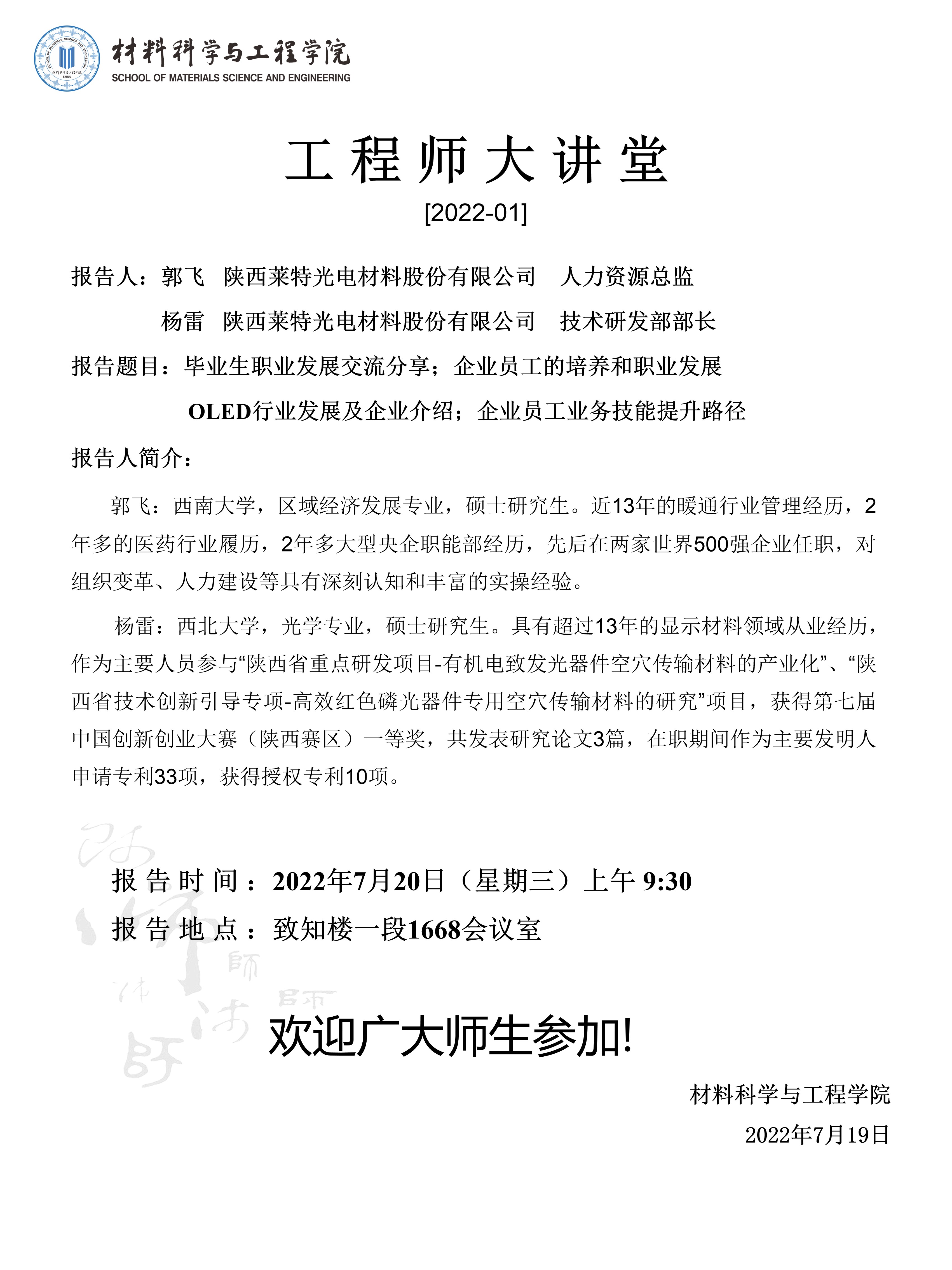 工程师大讲堂(7月20日)