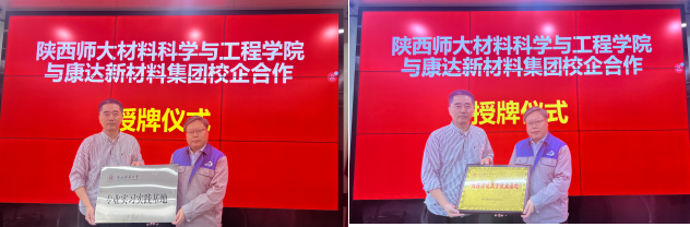 康达新材副总经理陆巍对学院一行的到访表示热烈欢迎,并重点介绍了公司的发展历程、主营业务及人才需求情况。他表示,此次授牌是对公司的高度认可,公司将以此为契机,为陕西师范大学学生提供更多实习实践和就业机会。在与会人员的共同见证下,曾京辉院长代表学校向康达新材授予“陕西师范大学就业基地”和“陕西师范大学专业实习实践基地”牌匾。