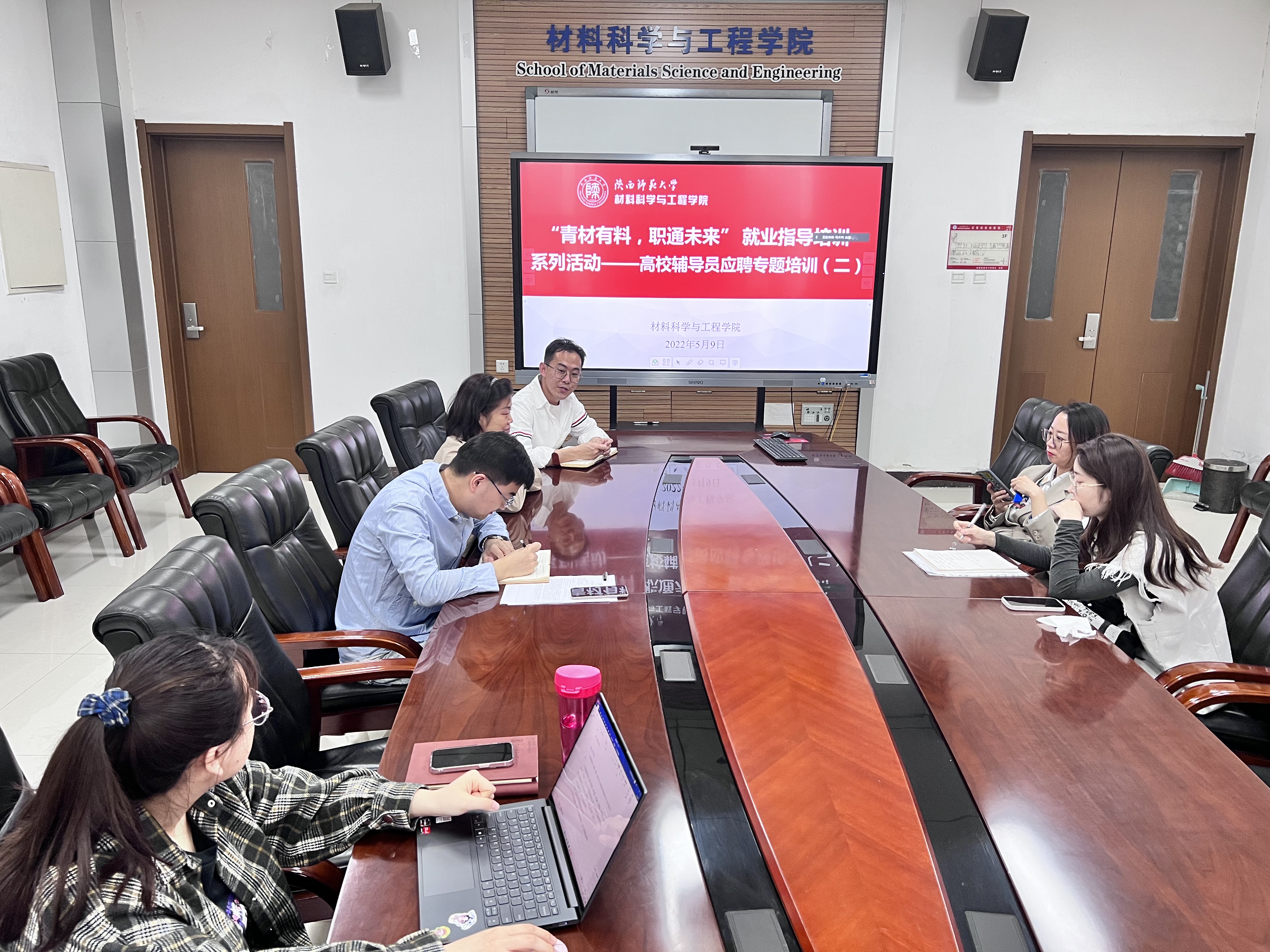 为进一步提升就业指导服务水平,为毕业生提供精准化的就业指导,我院于5月9日上午在致知楼2313会议室举办了“青材有料,职通未来”就业指导培训系列活动——高校辅导员应聘专题培训。学院党委副书记靳春泓,团委书记胡雯洁出席培训活动,培训会由学院辅导员丁喜主讲,学院四名研究生参加了本次培训。